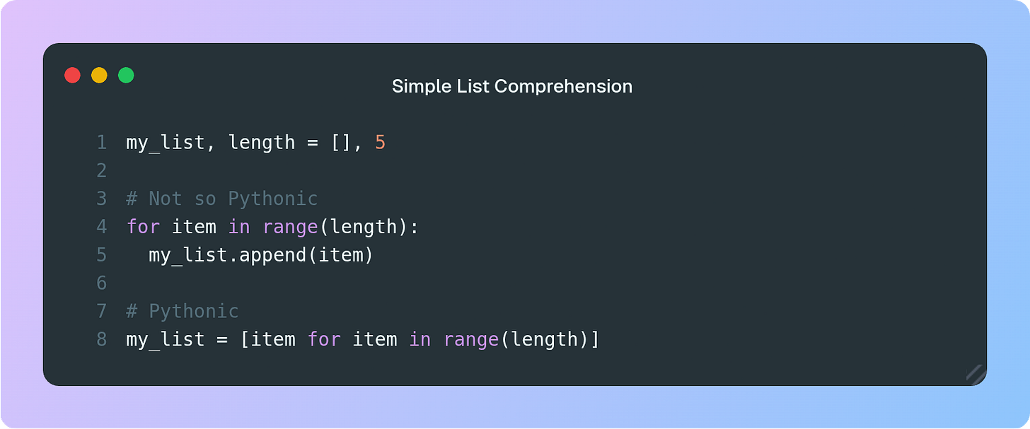 List comprehensions are one of the most popular features in Python, and it allows us to write idiomatic (or Pythonic) code.