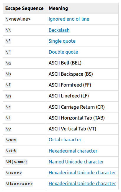 https://docs.python.org/3/reference/lexical_analysis.html#escape-sequences