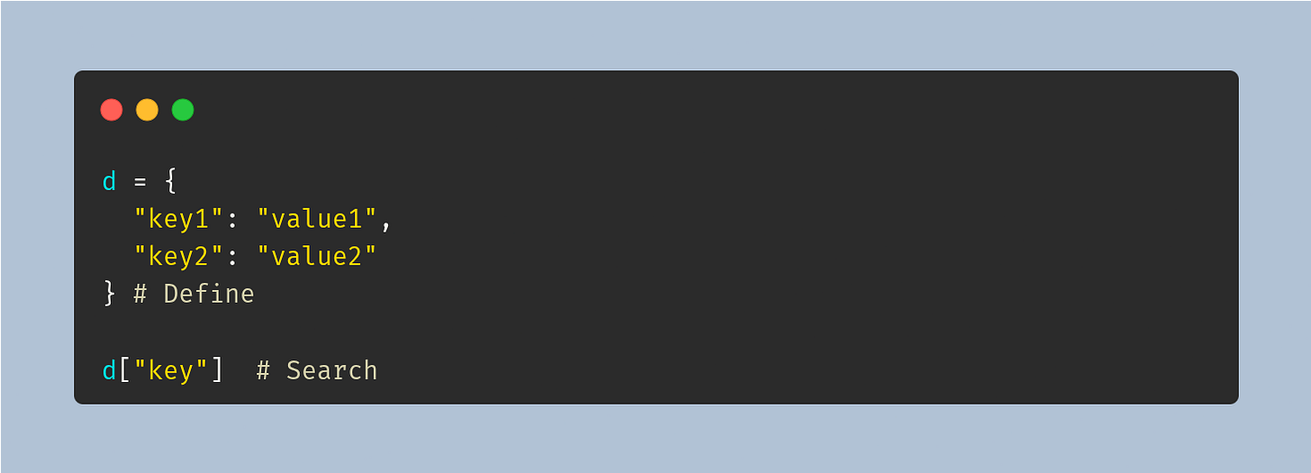 Python does not search through all the keys each time. Instead, it computes a hash of "key"
