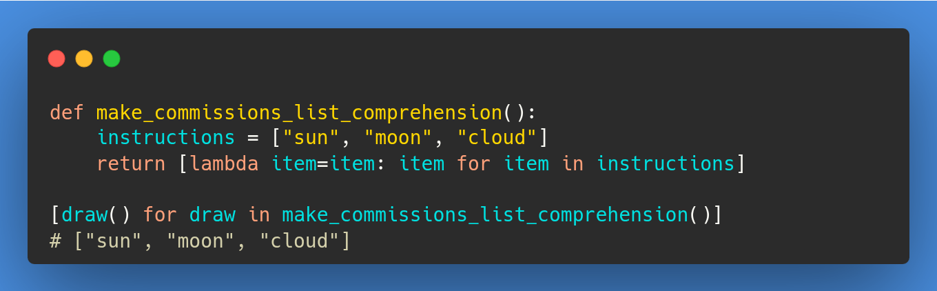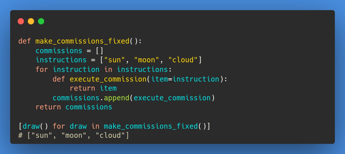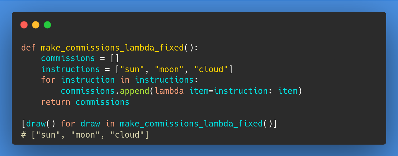 To correct this, we use a default argument for the lambda function: